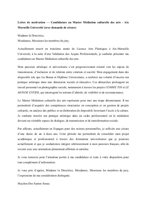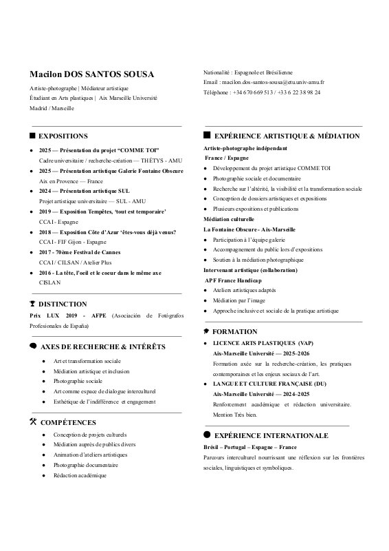 Dos Santos Sousa Macilon Cv Master Mediation Culturelle