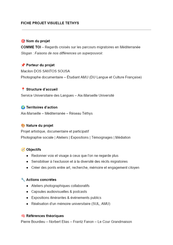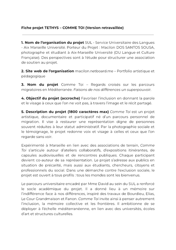 Fiche projet TETHYS – COMME TOI (Version retravaillée)